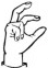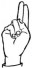 На ћирилици написано БОГДАН КАЗИМИРОВИЋ састоји се из 17 слова [?]. Исписано ћириличном једноручном азбуком за глувонеме: